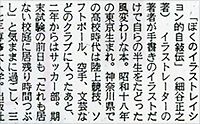 イラストレーターの著者が手書きのイラストだけで自らの半生をたどった風変わりな本。昭和十八年の東京生まれ。神奈川県での高校時代は陸上競技、ソフトボール、空手、文芸などのクラブに入ったあと、二年からはサッカー部。