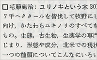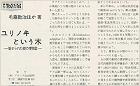 この度、毛藤勤治著「ユリノキという木」という、ただ一種類の木とそれにまつわる事柄をまとめた三百ページの本が出版された。これを聞いたとき「なにがなんでも、一つの植物についてこんなに」と抵抗を覚えたが、副題が「魅せられた樹の博物誌」、加えて、さらに英語で「ユリノキ物語」と添え書きしていることに興味をそそられて読む気になったことは事実であった。