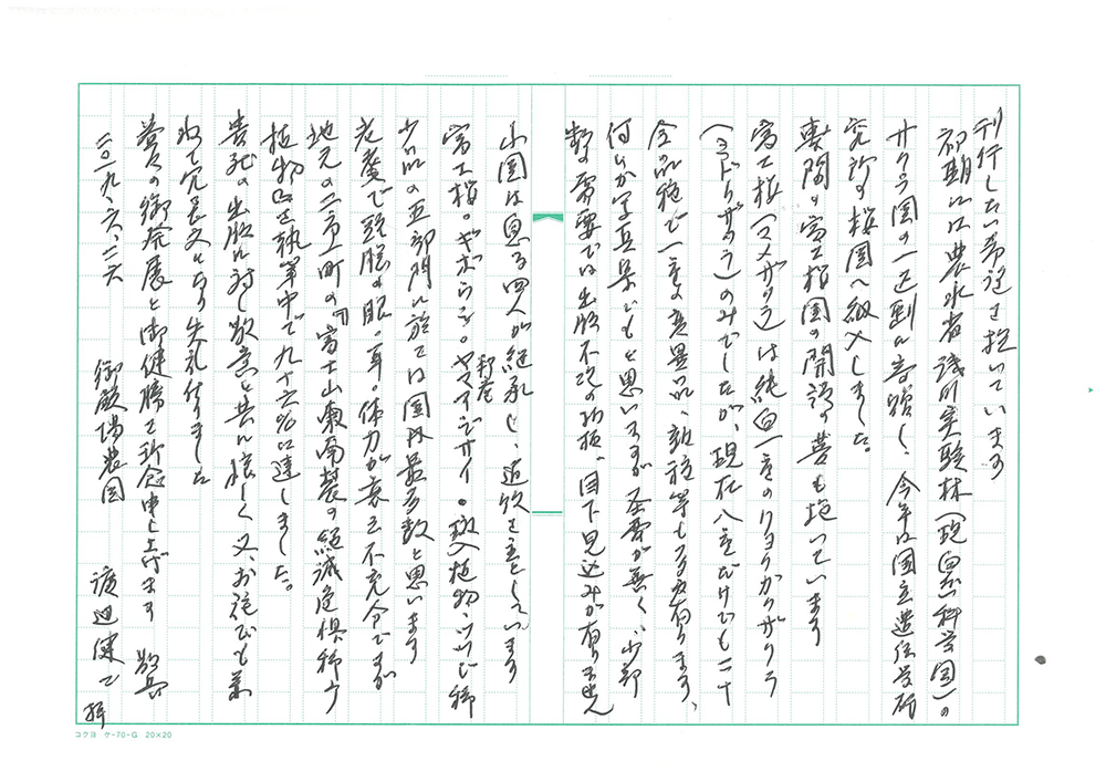 「私は人との戦いに破れたような気もする。人生に負けたのかもわからない。誇りといえばなんだが、齢70余年の大半を植物と共に過ごしてきた。だからこそ、神は、私を僕(しもべ)にお加えなさった。神はギボウシの番人の役目を私に与えて下さったのではないか。」