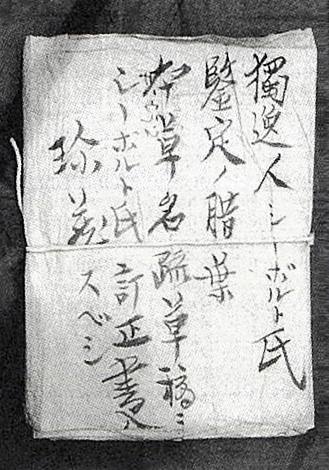 I do not care of the correctness of Dr. Siebold. My question is the size of sample. Why they are so small from the standard of present-day herbarium specimens? Naturally, specimens are fragmental. Plant body was stitched to base paper very carefully with paper string. This means that the sample is not temporarily prepared to show to Siebold but prepared for permanent preservation. In the articles of T. Ito, there is another herbarium album criticized by Maximowicz. It contains various smaller sized samples and totally wrapped in Japanese paper as much size as the previous. The size is nearly equivalent to B5 standard sized book which is most popular in our country. So, the size of specimen is convenient to file them together with books. Another reason I guess is that, when anybody wished to see foreigner, he had to pass the gate after due inspection. The size must have been convenient to keep his materials in his bosom or sleeve pocket of Japanese Kimono to slip up such unusual things from uneducated guardmen. They are why the size of plant sample is so small.