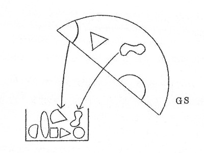 ここまで書けば、私が前から言っている「空き箱」と「中身」の関係が理解できるのではなかろうか。Aというナマエは空き箱(記憶場所)に対応し、 1.2がその中身なのである。もしS=A+Bのように、箱の中身を利用して何か仕事(研究)をしようとしても、それらがカラッポだったら仕事にならない。だからその前に②や③のような仕事(これも研究である)をしておかねばならないのである。