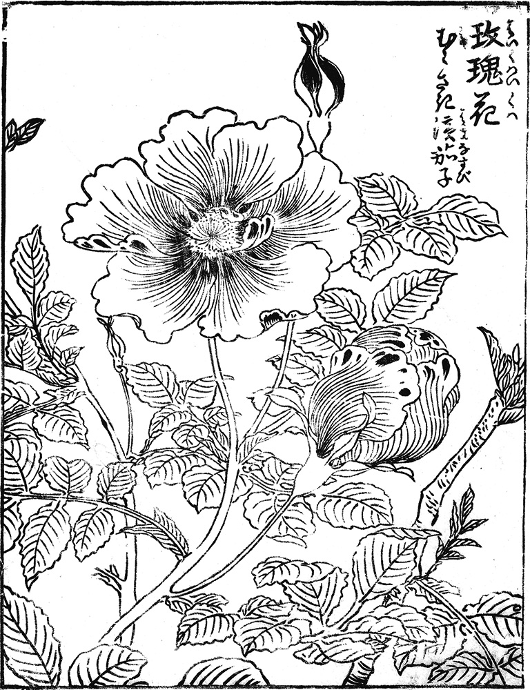 中国にはこのハマナスによく似た玫瑰があり、乾燥した花は玫瑰花(まいかいか)と称される生薬である。花が重弁で、茎のトゲが少ないなどの点でハマナスとは異なり、その変種として扱われている[写真3]。しかし、江戸時代の本草書はもとより、近年の日本や中国の薬草植物図鑑の多くはハマナスを充てている[図版1]。