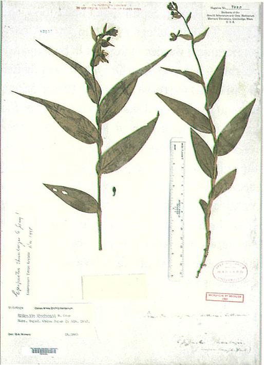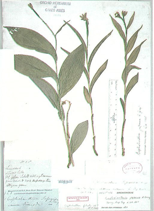 This is the holotype of Cephalanthera japonica A. Gray, now treated as a synonym of Cephalanthera falcata, which is based on much earlier name, Serapias falcata Thunberg.