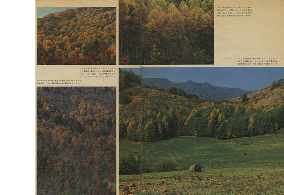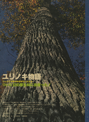 言葉の異なる国の広大な土地を走り続けながら、その道すがらに私を慰めてくれたものは、次々と現れるユリノキの再生林であった。それらの若いユリノキは、山肌に沿ってひときわ澄明な鮮黄色の群落を形づくり、時として渓谷いっぱいに広がり、また、山の斜面を帯状に登りつめて輝いて見えた。