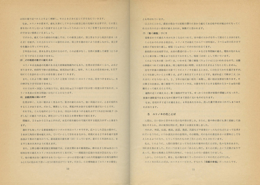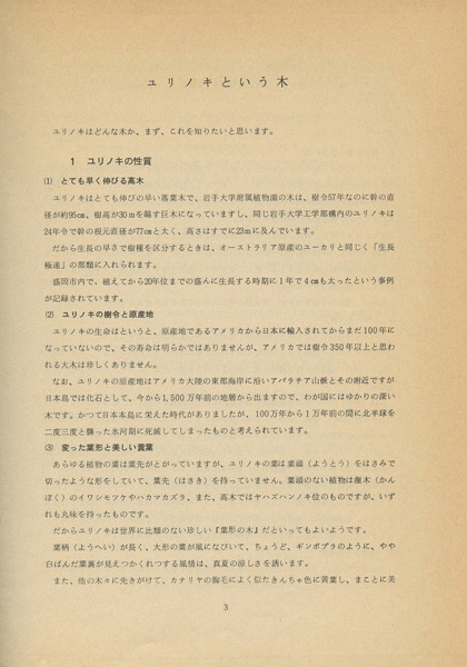 ユリノキが造林木として良いということが、日本でもはっきりと理解(りかい)されるようになれば、太平洋戦争後に広い面積に植えられた落葉松(カラマツ)が大口経木として伐採される、いまから20年後、あるいは30年後にいたって、次期造林木の樹種の一つとして選ばれることになるかもしれません。