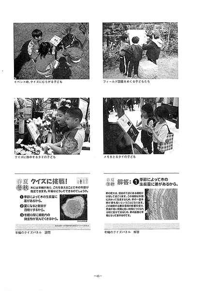 しかし、常時、クイズサインの前にヒントマンを配置しておくのは困難であり不可能だ。けれども大人も興味を引くクイズの作り方をしておくと、学校の先生や家族のお父さん、お母さんがヒントマンになってくれる(これらはクイズに限らない。解説サインでも、昆虫や草花遊びをテーマにしたものなどは、お父さんの少年時代の回想に火がつくのか、熱心に子どもに解説する父親がいたりする)。要は大人をのせることが大事なのだ。