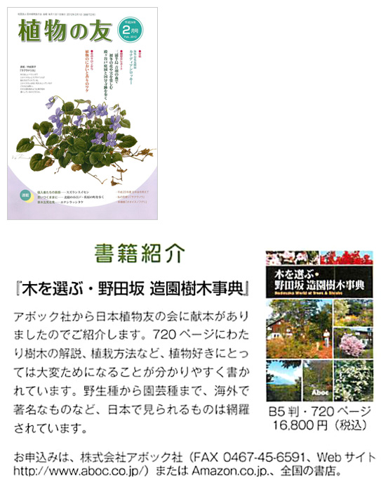 2012年2月1日発行の植物の友 2月号に『木を選ぶ・野田坂造園樹木事典』が紹介されました。