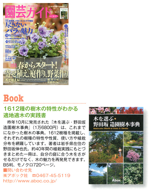 「1612種の樹木の特性がわかる適地適木の実践書」―2012年3月8日発売の園芸ガイドに『木を選ぶ・野田坂造園樹木事典』が紹介されました。