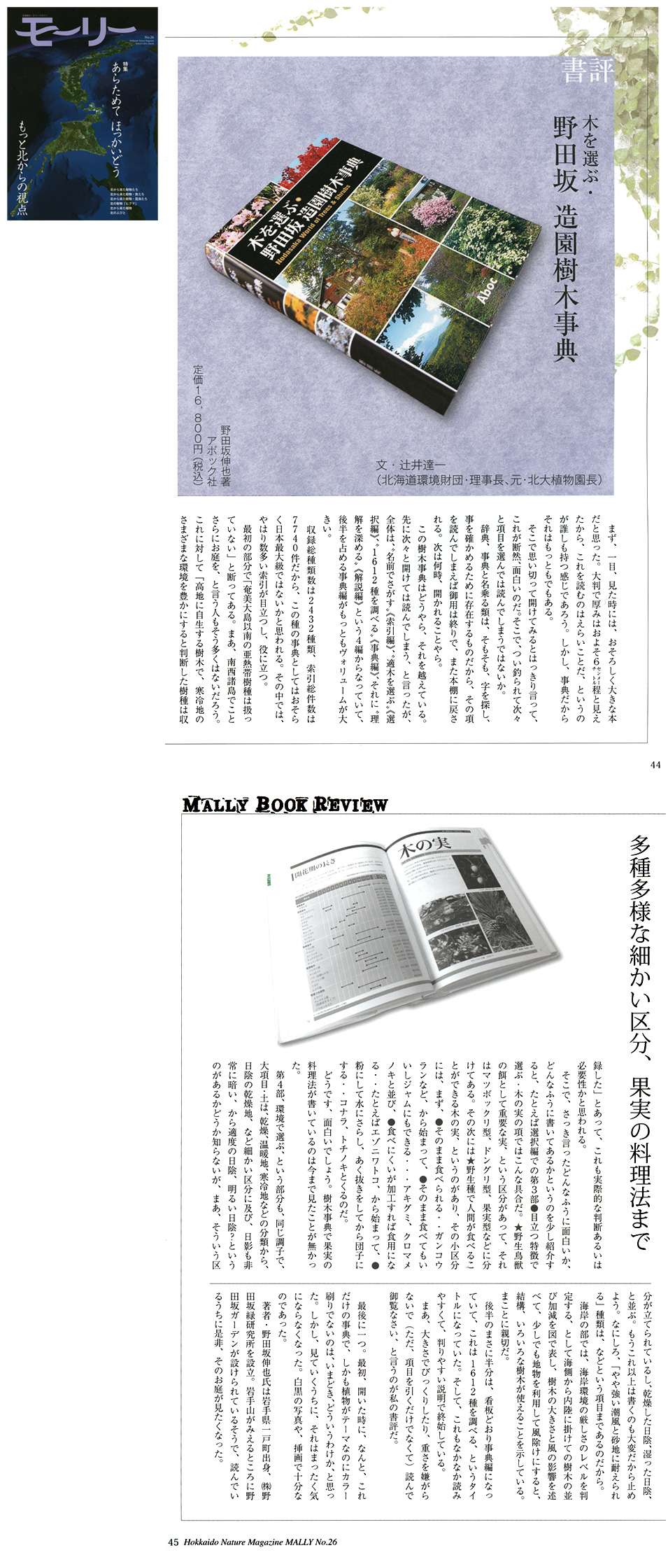 「多種多様な細かい区分、果実の料理法まで」―2012年3月16日発行の北海道ネーチャーマガジン モーリーに『木を選ぶ・野田坂造園樹木事典』が紹介されました。(北海道環境財団・理事長、元・北大植物園長 辻井達一氏)