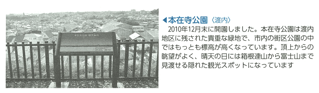 2012年7月25日発行の広報ふじさわ(第1492号)に、本在寺公園の眺望サインの写真が掲載されました。